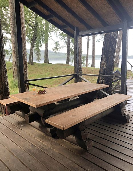 Расположенная на живописном берегу озера, баня с просторной верандой и уютной мангальной зоной приглашает окунуться в традиции оздоровительного и расслабляющего отдыха. Рядом расположен банный чан.
